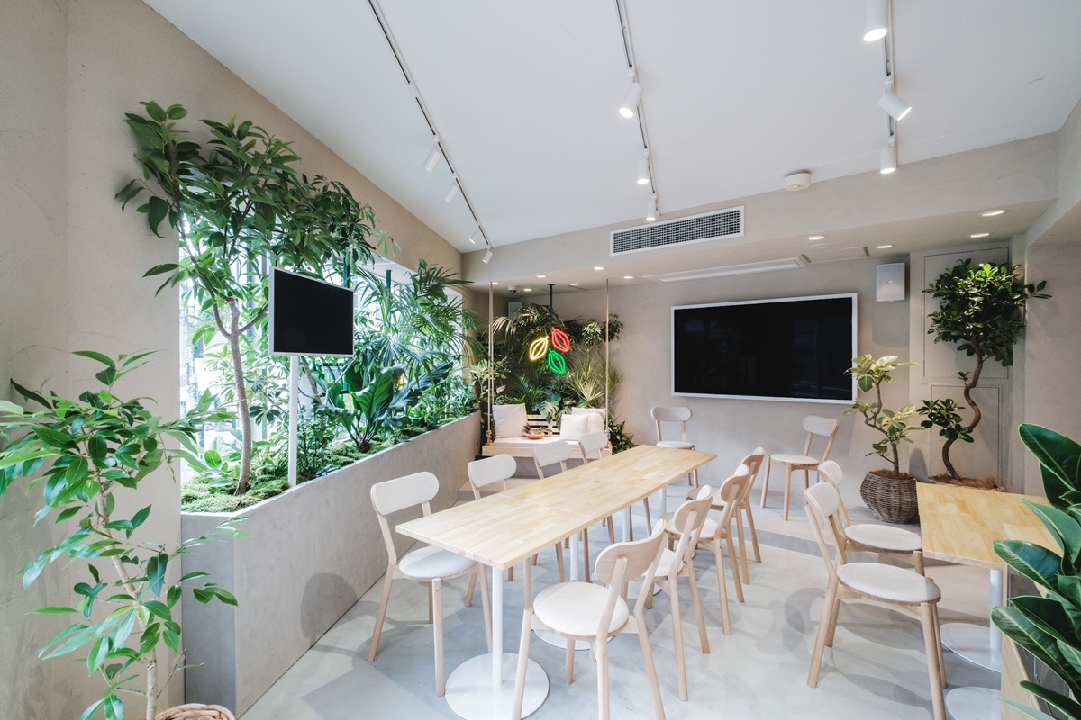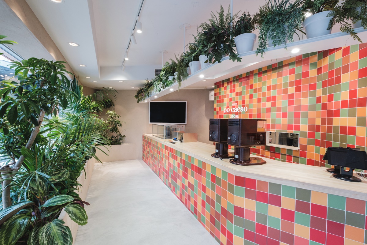 こちらがイートインスペース。内装はカカオのある原風景をモチーフにデザインしたのだとか。店内奥にはかわいいフォトスポットも!