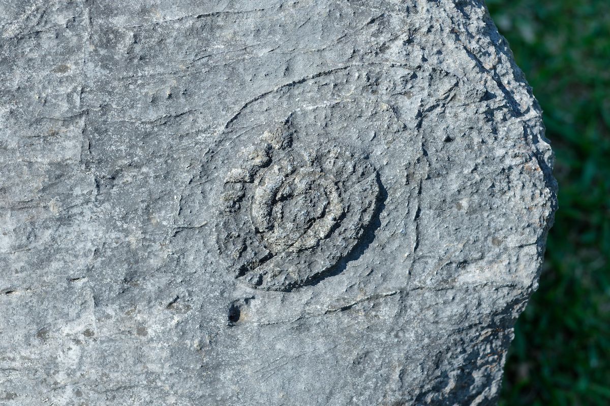 「今帰仁城跡の城壁は14世紀中頃に構築されました。これは本土の城よりも100年以上早いことになります。また、使用している石は古期石灰岩で硬く割れにくい性質をもっています。元々は海の中にあったものなのでアンモナイトの化石を見ることができますよ。」