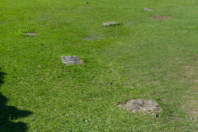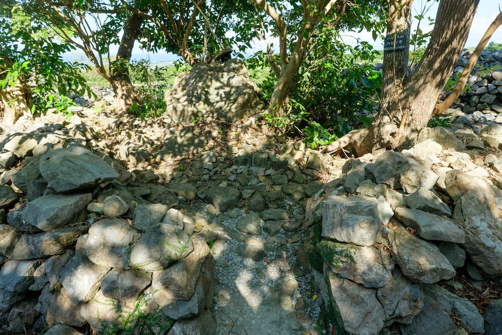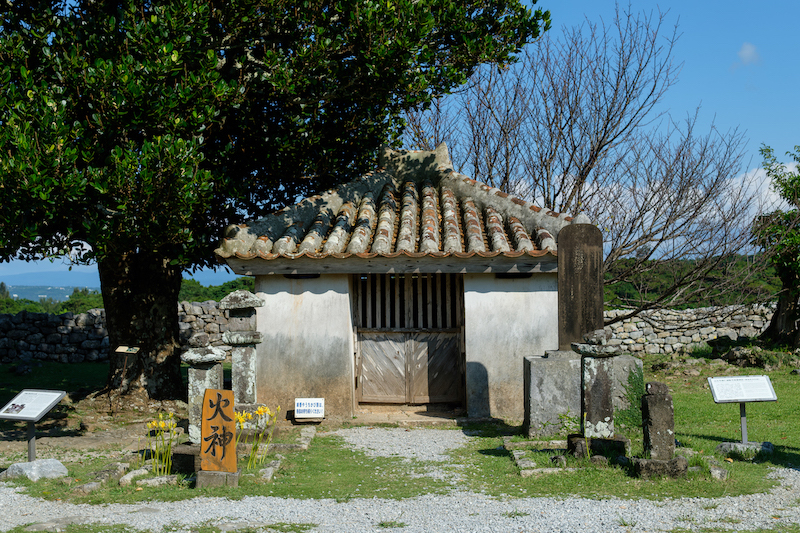 城内で最も高い位置にあり、主要な建物があった場所でその礎石も残っています。火の神の祠や灯篭があり、神聖な雰囲気を醸し出しています。