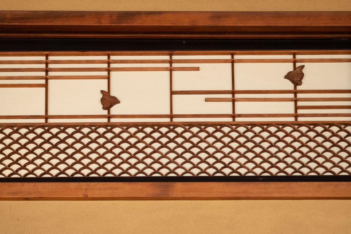 部屋に入ると、欄間(らんま)や障子、飾り窓などに細やかな装飾が施されていることに驚きます。その細工は、鶴が舞うものや帆が走るもの、勝利と豊かさを表す千鳥文様などさまざま。