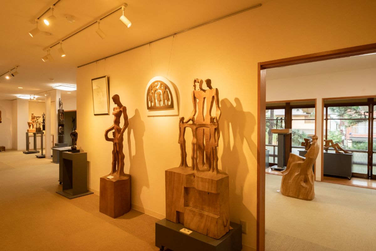 伊東にまつわる要人の展示スペースが設けられた2階では、伊豆高原にアトリエを構える彫刻家・重岡健治さんの展示室もあります。作品は実際に手で触れることができるので、指先で質感を堪能しましょう。