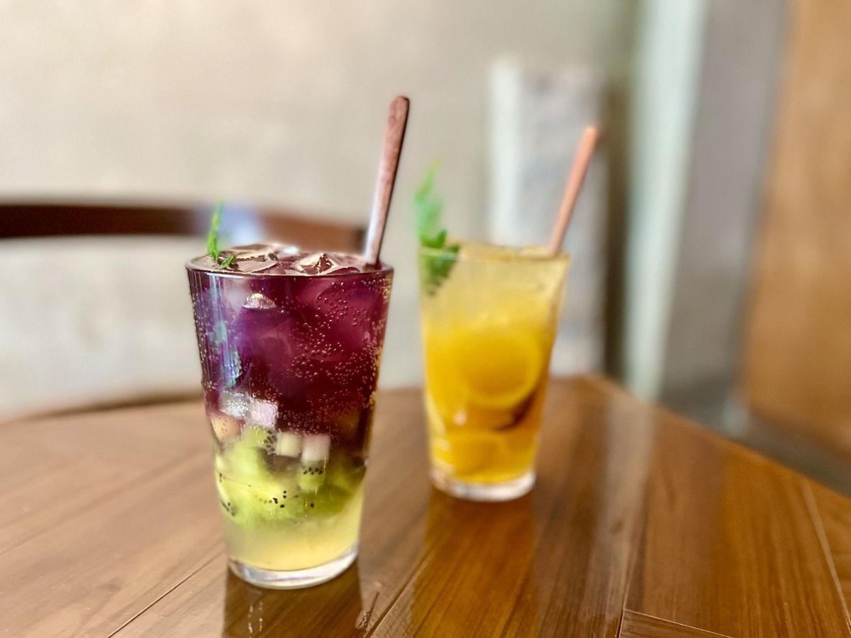 ドリンクにもBTSを連想させるメニューがあり、やはり訪れるファンたちに人気だとか。人気のドリンクとしてコーヒーなどはもちろんなのですが、注目すべきは“エイド”(フルーツを使ったドリンク)。“スプーンで食べるエイド”というコンセプトで、ほぼ毎日仕入れる新鮮なフルーツで作られる「パープルグリーンエイド」7800ウォンは、BTSのファンに“アーミーカラー”として知られる紫色が爽やかできれい。パイナップルとキウイがふんだんに入っていておいしい! もう一つは、「イエローオレンジエイド」7800ウォンで、オレンジとレモンのテイストが爽快です!