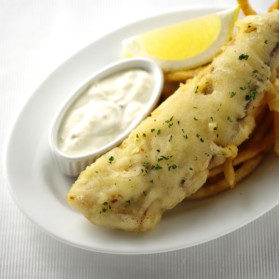 「真鯛のフィッシュ&チップス」1100円は、イギリスのファストフードの定番。真鯛のふわふわした食感が味わえます。