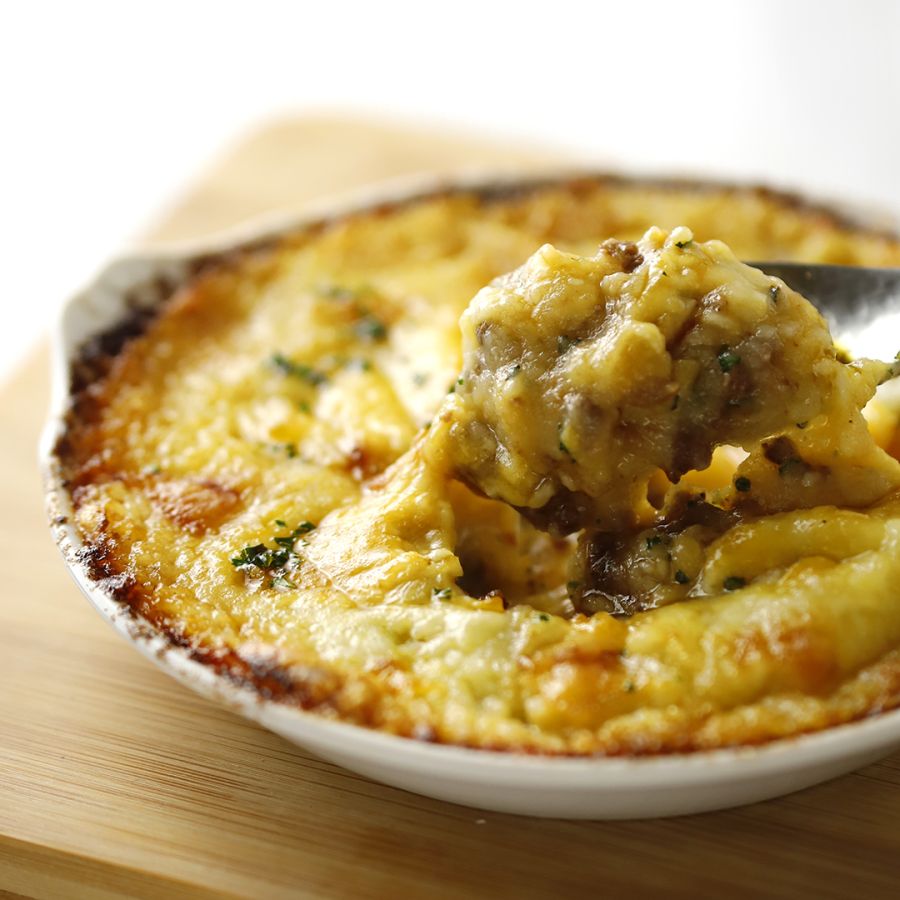 「シェパーズパイ」980円は、粗挽きの牛とラムのミートソースの旨味がおいしい、イギリスのポピュラーなオーブン料理。ほかにも、サクサクの食感がクセになる、サーモンとポテトのクリームコロッケ「フィッシュケーキ」750円や、ショートパスタなど、食べやすくておいしい単品料理がたくさん!