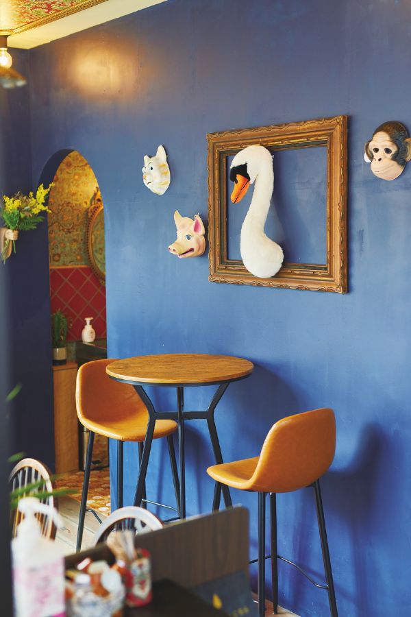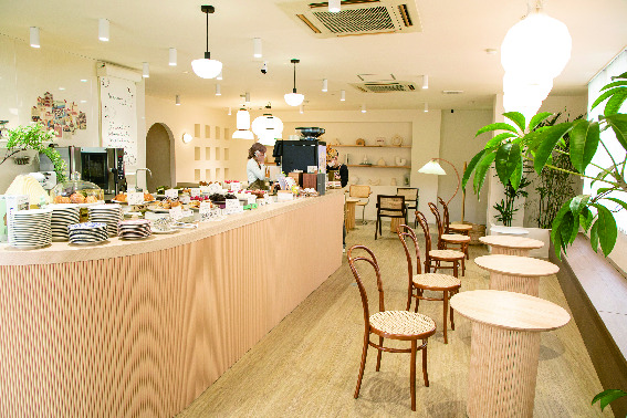 日本のわびさびと、韓国のポップさを融合させた和韓カフェ。店内は遊び心あふれる小物とシンプルな空間で居心地の良さが魅力です。