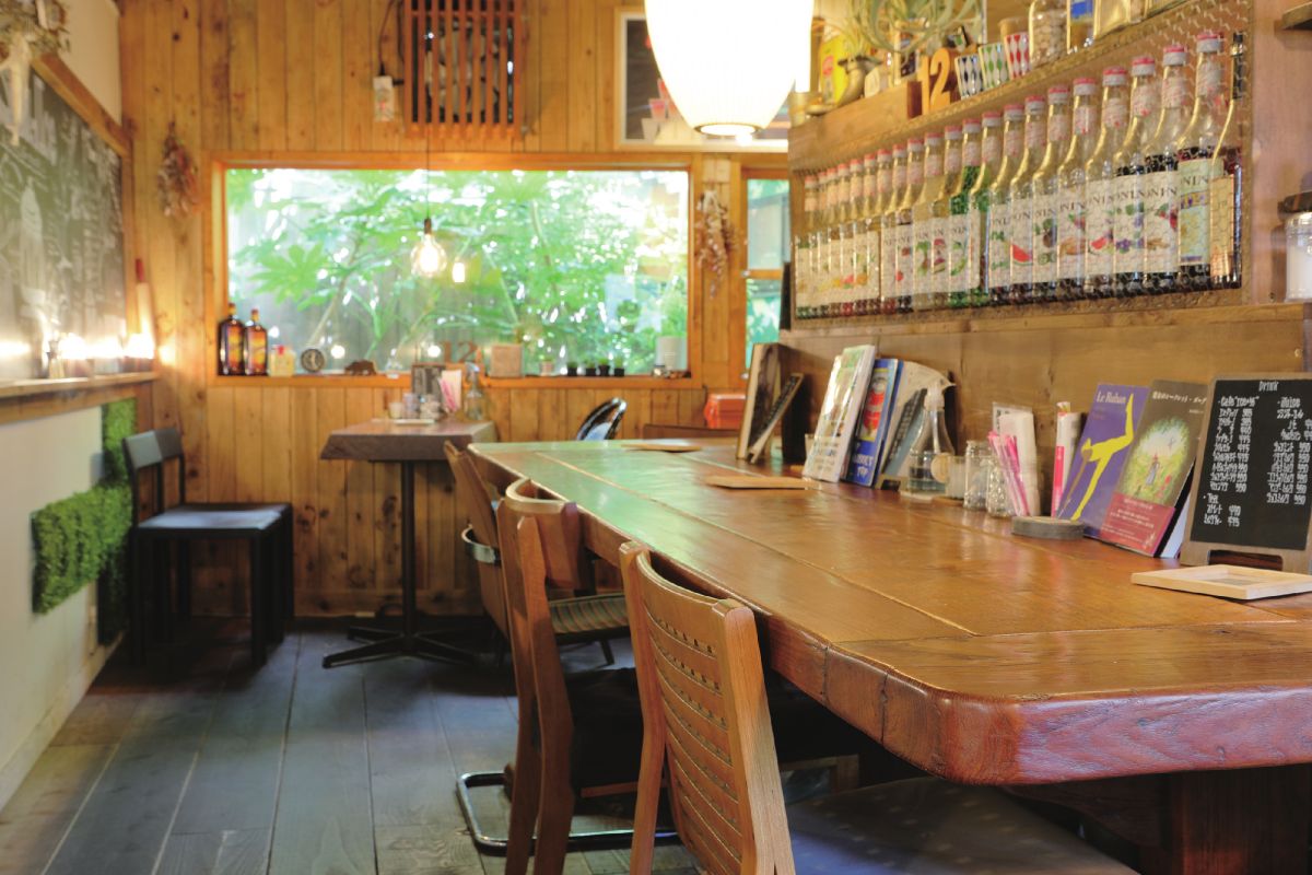 こちらはかき氷とチーズケーキ専門のカフェ。店内からは外の植栽を眺めることができ、ウッディで落ち着いた雰囲気となっています。