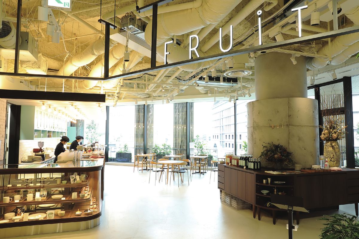果物スイーツ専門のパティスリー「ハナフル」が手掛ける話題のフルーツサロン。店内はグリーンを配した居心地の良い空間で、大きな窓の外には梅田の街並みが広がります。