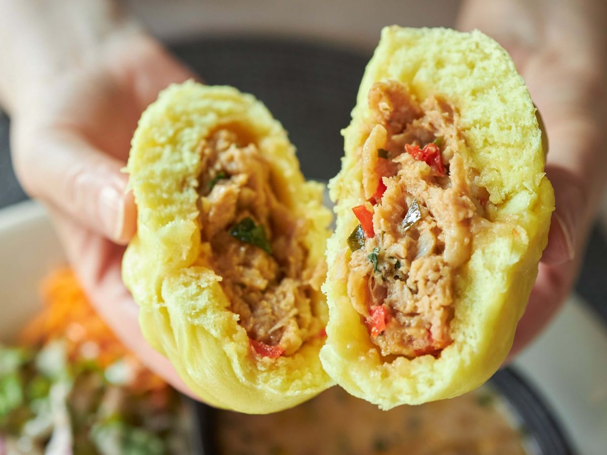 しっとりとした中華まんの生地に、バジルが品よく香るピリ辛のガパオがたっぷり入ったボリューム満点のひと品。「オイスターチャウダー」だけでなく、どのスープとも好相性ですよ♪