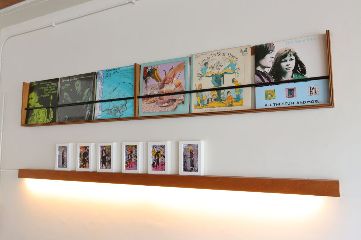 その核となるのが1階にある「一隆堂喫茶室」です。広い窓から光が射し込む、白を基調とした明るい空間。レコードジャケットが多く飾られており、ジャンルを問わず小気味いい音楽が店内に流れています。毎月最終土曜18〜22時は「ジャズ喫茶 一隆堂」として営業しているそう(イベントの開催については公式HPなどを要確認)。