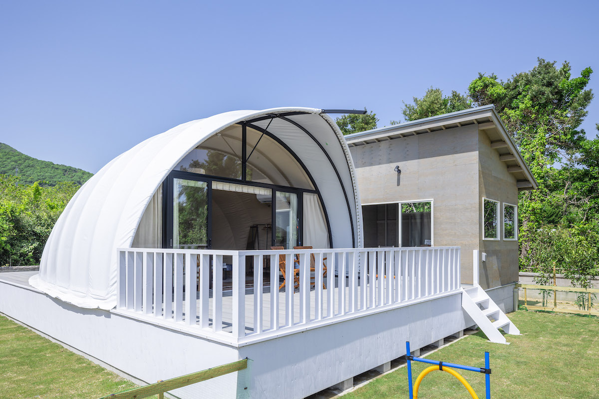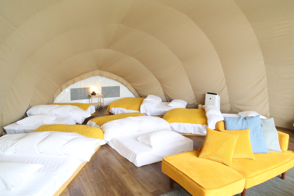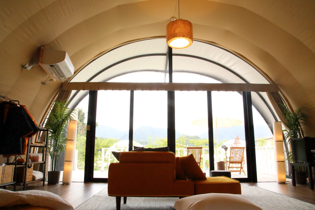 開放的な大型ドームテント&県内初のコクーンテントで、ラグジュアリーグランピング