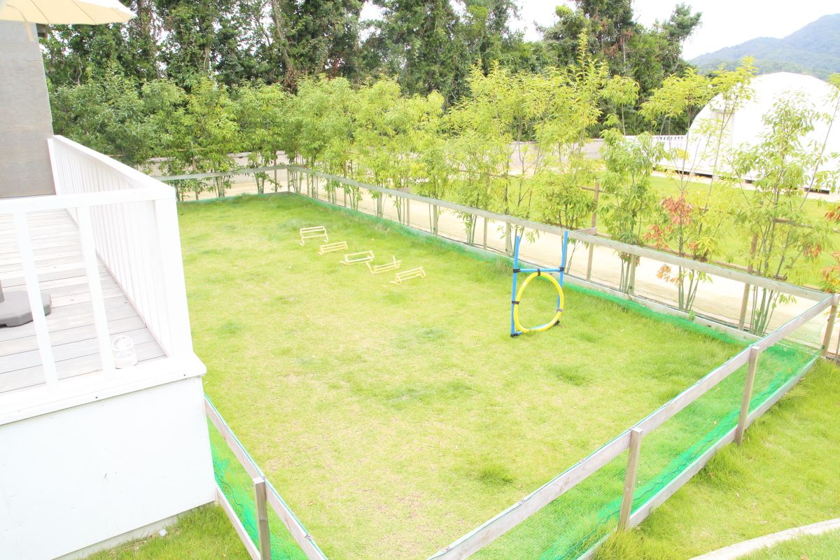 次に、愛犬との宿泊が叶うコクーンテント。まるで繭のような形の見た目がかわいい、グランピングテントです。プライベートガーデンには広々とした専用ドッグランが備わっているので、わんちゃんも自由に走り回ることができます。