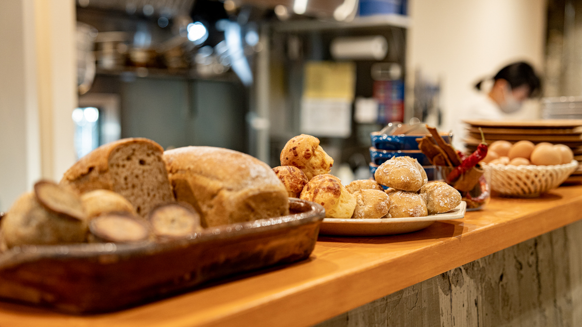 オフィス街としての顔をもつ東日本橋界隈は早朝の需要も多く、2022年10月末ごろから8時〜10時30分(LO)のモーニングもスタート。「BEAVER BREAD」の焼きたてパンをはじめ「おまかせサラダ」750円や「ラタトゥイユと半熟卵」750円などとともに、コーヒー、カフェラテ、リンゴジュースといったワンオーダー制のドリンクを楽しめます。