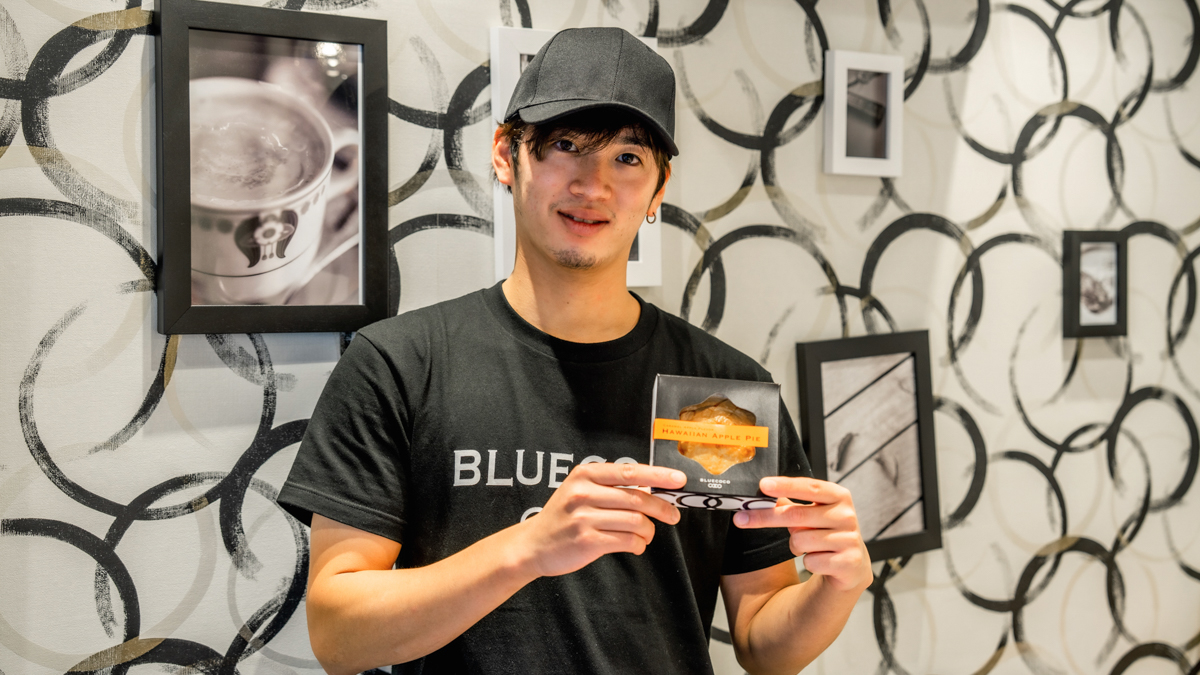 父親の東京進出を支えているのが、パティシエ歴7年という息子の柴沼海帆さん。丁寧かつ分かりやすい説明でお店に並ぶさまざまな商品を紹介してくれました。そして、手に持っている黒いケースが看板商品のひとつ。ハワイ旅行で食べたという思い出の味をもとに、日本人の舌に合わせて改良を重ねた「ハワイアン アップルパイ」770円です!