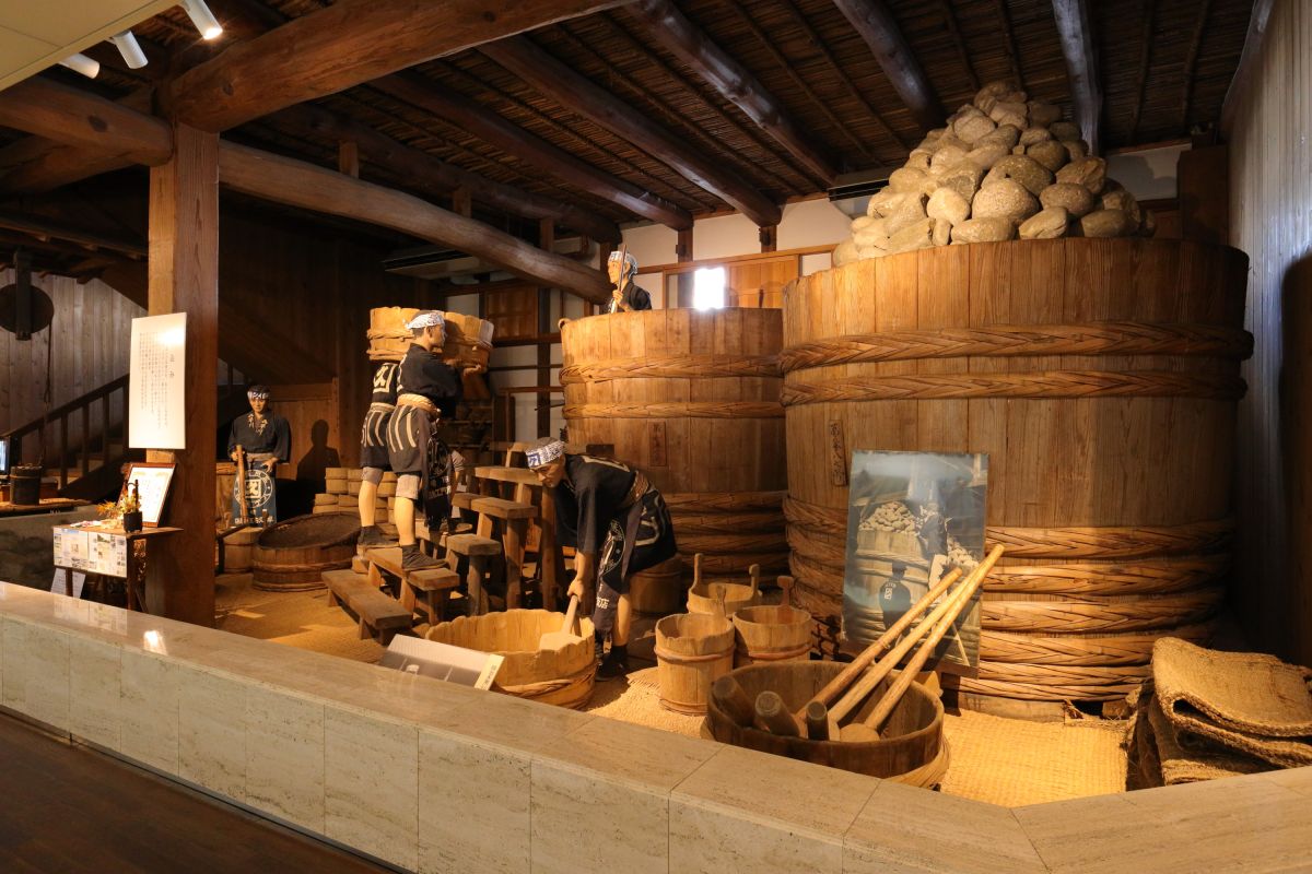 味噌ができるまでを、人形や実際に使われていた道具を用いて解説する展示も。人形は実際に同社で働いていた方々がモデルとなっているそう。妙にリアルなのも納得がいきます。