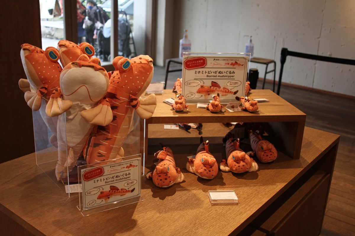 併設されたアクアリウムショップではオリジナルグッズも販売しています。人気のミナミトビハゼのぬいぐるみは、リアルさにこだわりつつも、どこかとぼけた表情が相まって、キュンとするかわいさ!館内を見学し終えたら、ぜひショップをのぞいてみてくださいね。