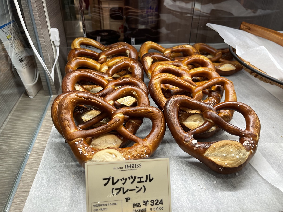 一日を通して人気があるのは「プレッツェル(プレーン)」330円。外側の太い部分はモチッと、中心の細い部分はカリッと、異なる食感が味わえます。