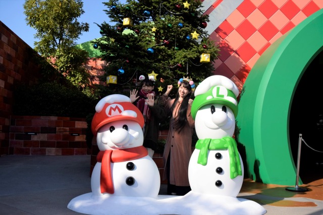 エリアのエントランス「スーパー・スタープラザ」では、ゆきだるまに変身したマリオとルイージと一緒に記念撮影ができる「マリオ&ルイージゆきだるま・フォト・オポチュニティ」2000円を開催。ファンは、ぜひとも写真に収めておきたいスポットです。