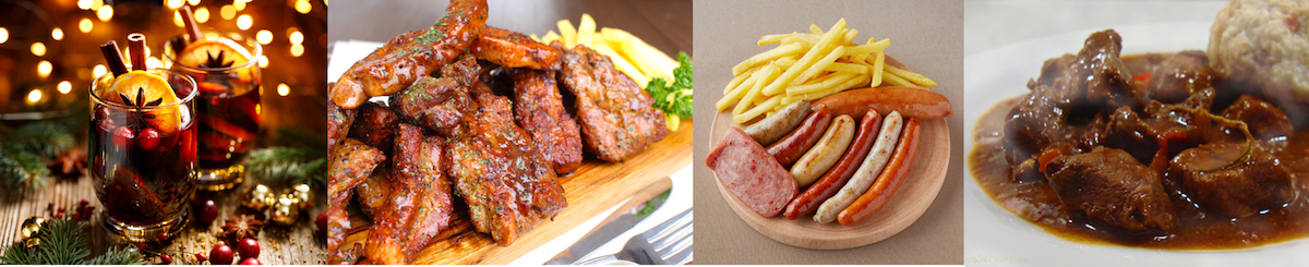 グラーシュとローストビーフとパンが一度に味わえる、ごちそうメニューも!