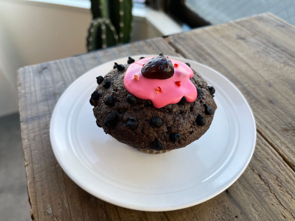 安定した人気を誇るという「ブラックピンク」は、ブラックココアの生地にストロベリーフレーバーのアイシングを施した見た目もキュートなマフィン。てっぺんのイチゴのグミもかわいらしく、テンションが上がります。