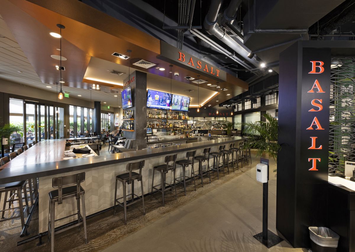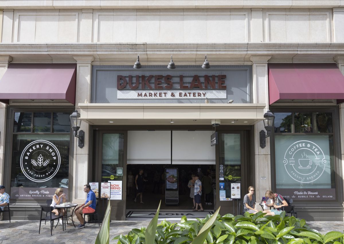 インパクト大の真っ黒なパンケーキ、チャコールパンケーキが食べられるのは、ワイキキのクヒオ通りとシーサイド通りの角に位置するグルメスポット「デュークス・レーン・マーケット&イータリー」内のレストラン「バサルト」です。店名の”バサルト”とは玄武岩、マグマが冷えて固まった黒い火山岩のことで、ハワイらしいネーミングなのはもちろん、レストランのシグネチャーメニューである黒いパンケーキにもマッチしていますね。