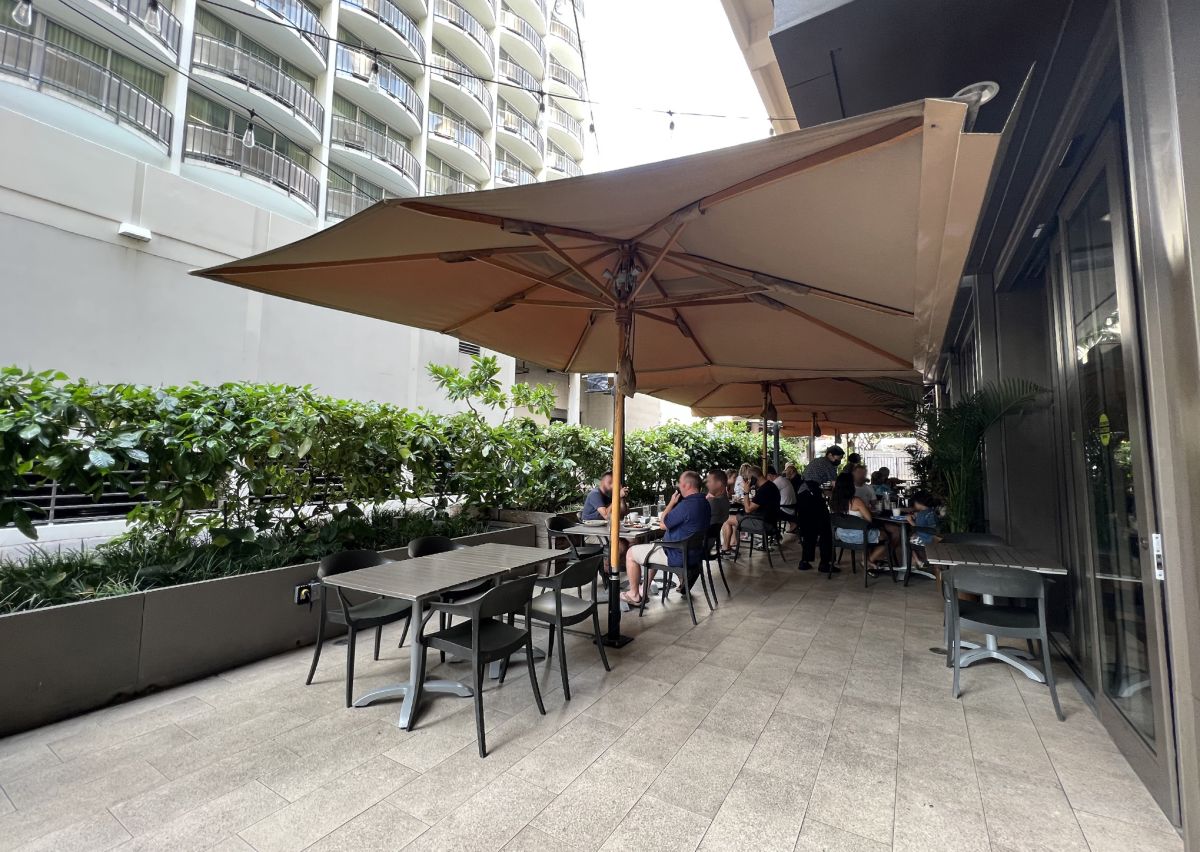 ワイキキの真ん中にあるとは思えないほど落ち着いたテラス席も人気で、ハワイの風を感じながらフォトジェニックでおいしい料理を楽しむことができます。