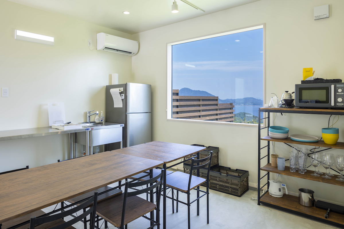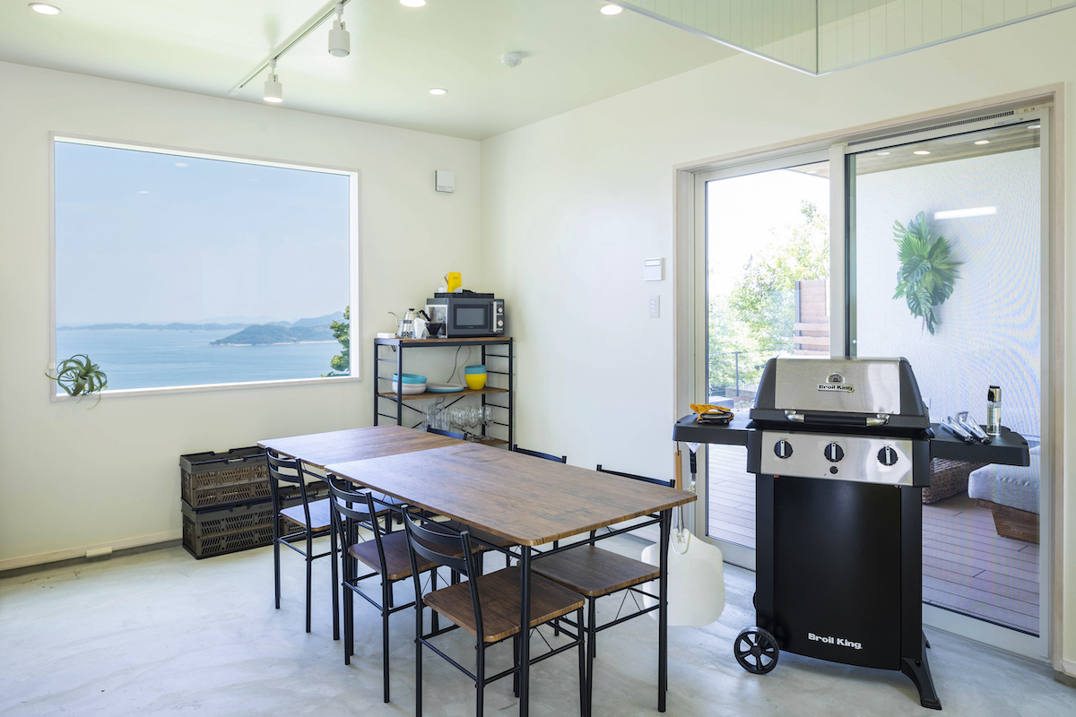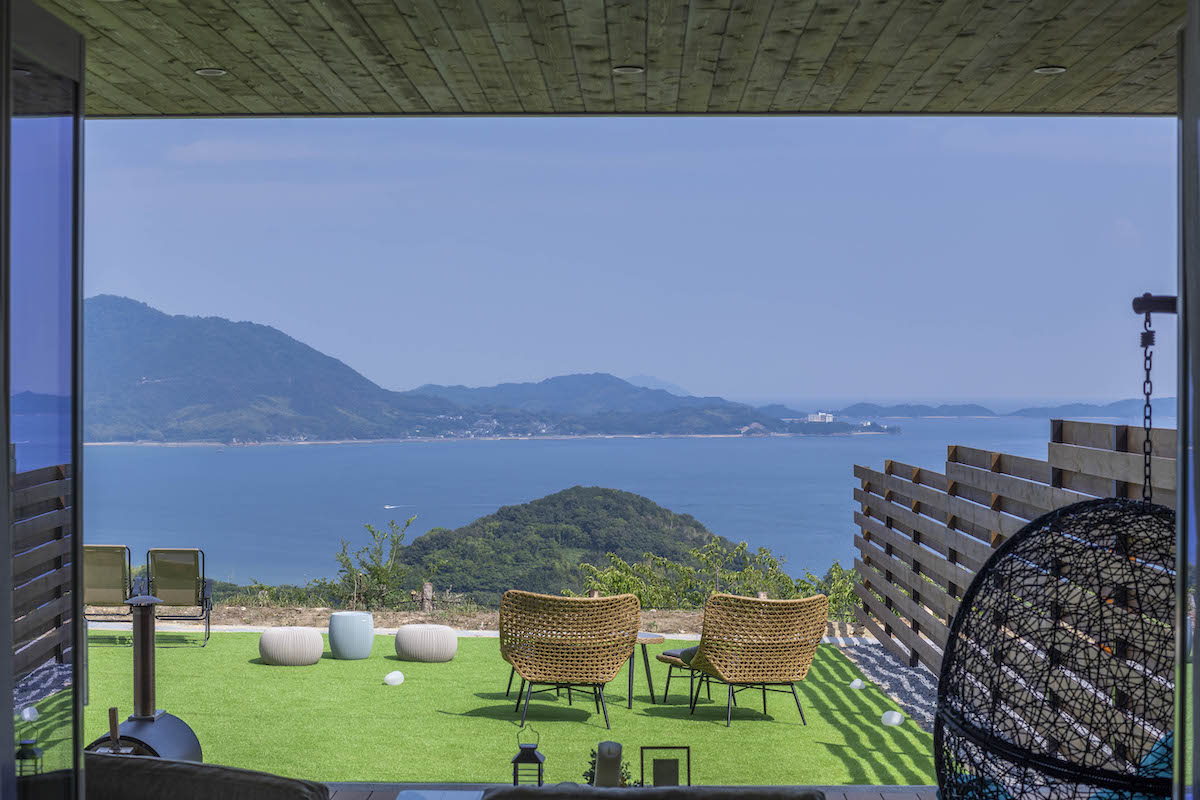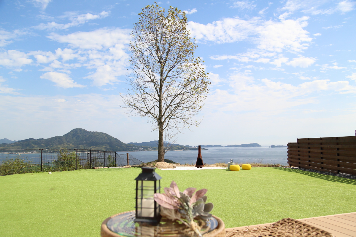島の高台に立っているため、テラスからの眺望がバツグン。瀬戸内海に浮かぶ岩城島や伯方島などの多島美が目の前に広がります。