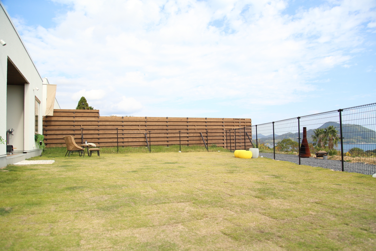 お次は愛犬と泊まれるお部屋。ドッグスイートヴィラの庭には天然芝が使われています。海の見える開放的な庭でわんちゃんが思う存分駆け回れるので、施設オープン時から人気のお部屋なのだそうです。