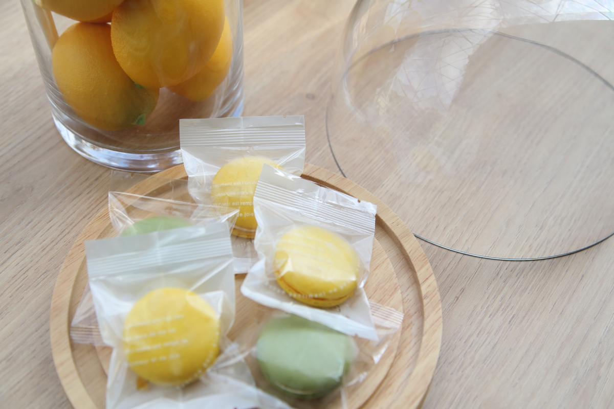 ウェルカムスイーツは、生口島にある瀬戸田レモンケーキ店「島ごころ」が手がけたマカロン。少し甘めのイエローレモンマカロンと、レモンの酸っぱさを感じられるグリーンレモンマカロンの2種類です。ウェルカムスイーツは各部屋に用意されていますよ。