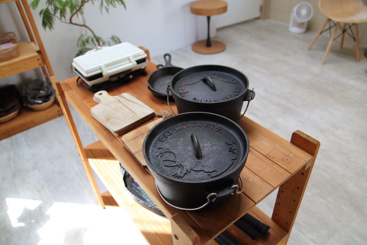 ダッチオーブンやスキレットの貸し出しもあるので、食材を持ち込んで本格的なアウトドアクッキングを楽しむこともできます。焚き火体験(薪1束900円)など一部有料のものもありますが、ミニバーの利用や焼きマシュマロ用のマシュマロ、各種レンタルが宿泊料金に含まれているのはうれしいポイントです!