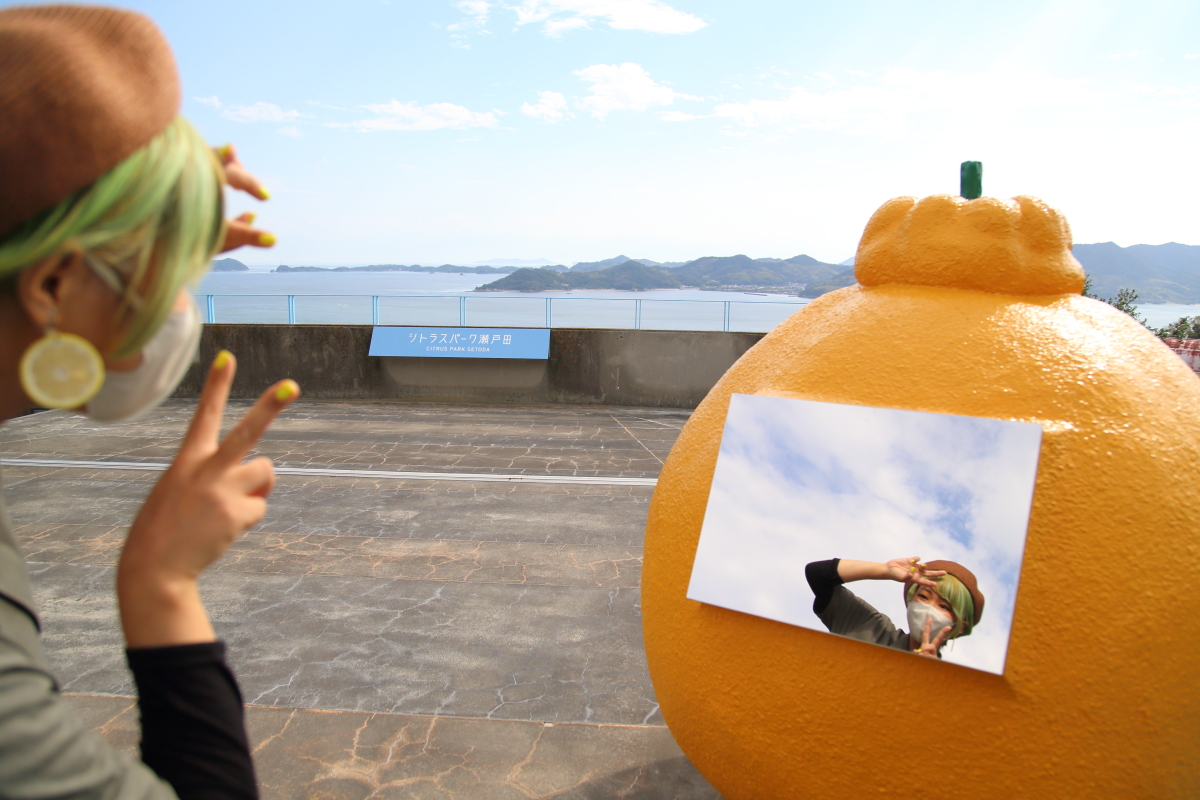 9:00 瀬戸内海のパノラマビューを楽しみながらシトラスパーク瀬戸田内を散策。レモンやオレンジのオブジェと記念撮影