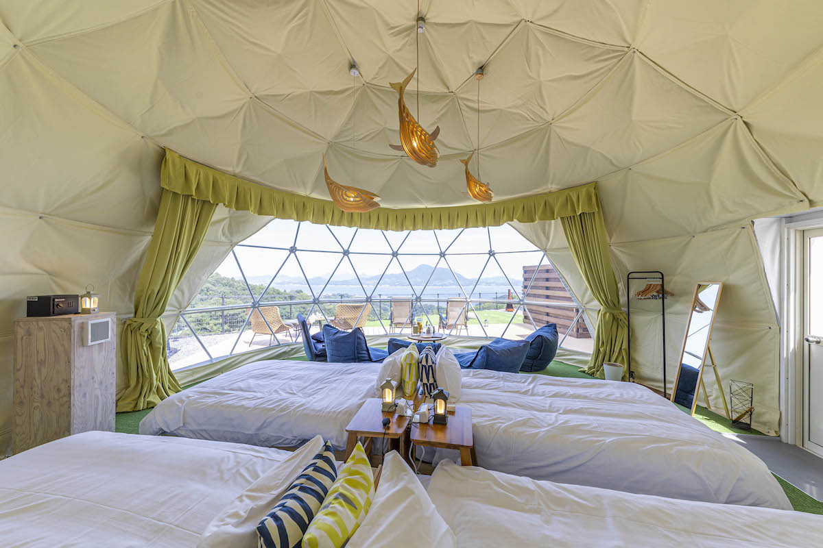 全棟オーシャンビュー!「LEMON FARM GLAMPINGしまなみ」の宿泊施設をご紹介