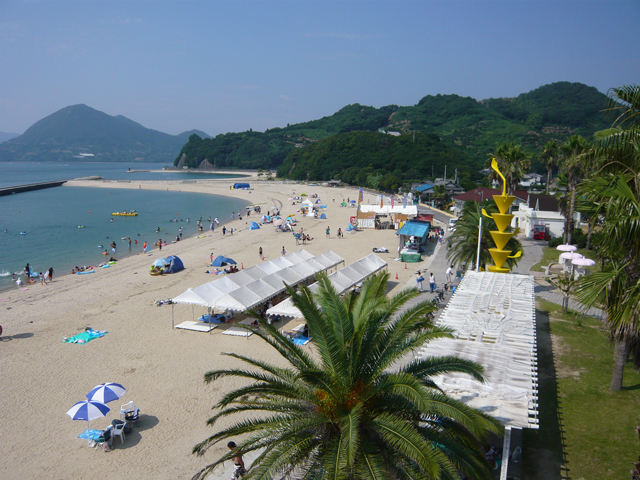 800mも続く白い砂浜で知られる海浜スポーツ公園で、海水浴(監視員駐在時間:7月中旬~8月下旬の10~16時)のほか、シーカヤック、SUP体験、レンタサイクルが楽しめます。夕日の名所として有名。