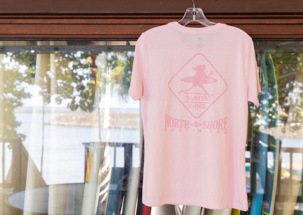 「サーフ&シー」のオリジナルTシャツは是非ゲットしておきたいアイテムの一つ。パステルカラーがかわいい「レディース用のロゴ入Tシャツ」$26は、ピンクの他、ブルー、イエローの3色展開で、優しいイメージが◎!