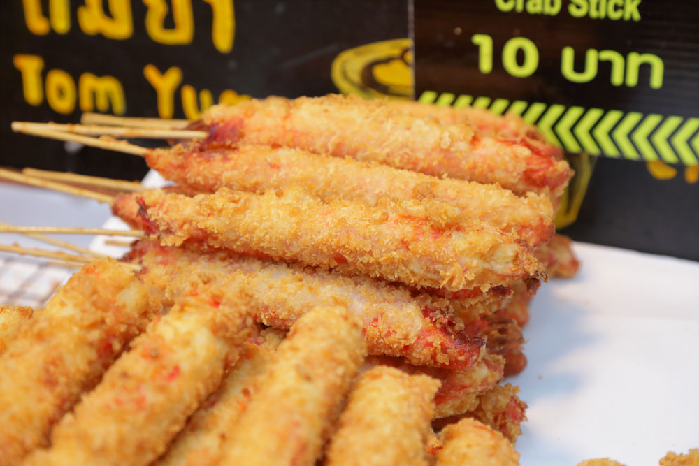 カニカマに衣をつけて揚げたこちらは1本B10。外はサクサク、中はふんわり、カニカマの旨みもしっかり伝わる、意外なおいしさを発見できるストリートフードです。