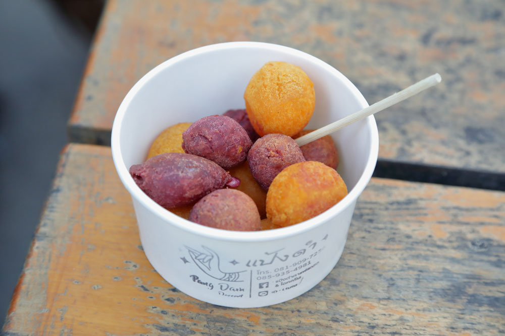 サツマイモ団子の「カイノッククナタ」B40はタピオカ粉やココナッツミルクなどを混ぜて丸めて揚げたもの。もちもち食感で、噛むほどに甘みが口の中に広がっていきます。