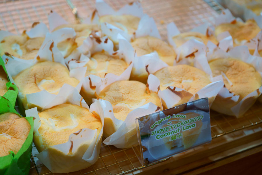 カップケーキのような見た目の「シフォンケーキ」は、ココナッツ、パンダン、タイティー、チョコレートの4種類のクリームがラインナップ。2個B60、4個B120、6個B180。生地はシフォンケーキ独特のふんわり感があって、クリームも上品な甘さです。