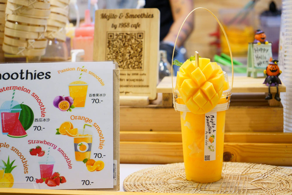 フレッシュなマンゴーが豪快にのった、見た目のインパクト抜群の「マンゴースムージー」B80。乾いたのどを潤してくれます。歩き疲れたときのエネルギーチャージにぜひ!