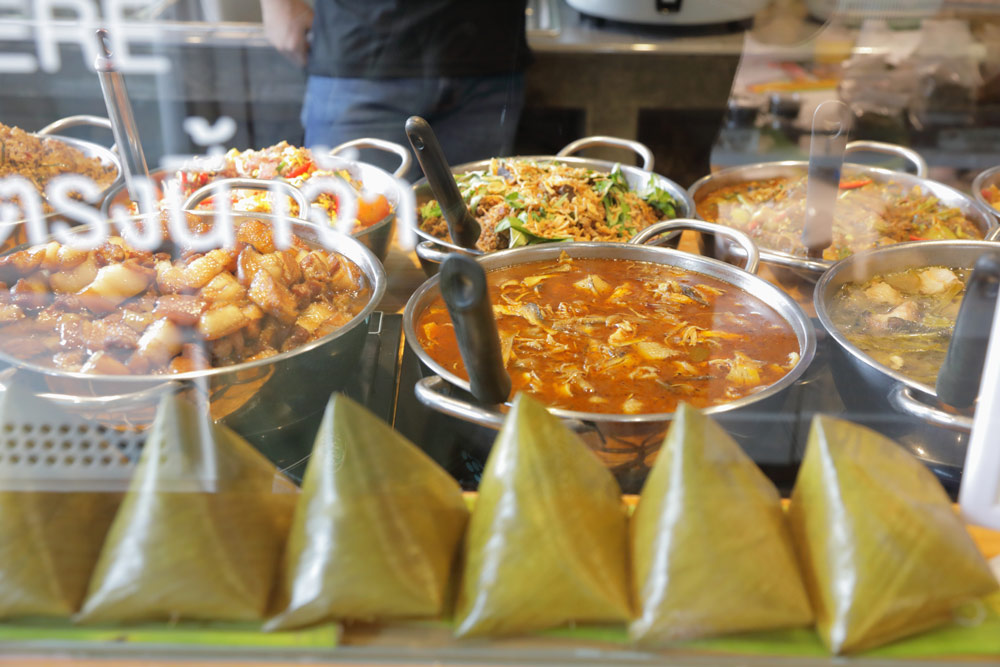 「ホーム・ドゥアン」では、「カオソイ」も人気ですが、もうひとつの人気メニューがぶっかけご飯です。お店に入ってすぐ左手に並ぶ惣菜から選んで、ご飯にかけてもらうスタイルで、シンプルだけど、タイらしさを味わえる食堂の定番です。オーダーは指差しでOK。