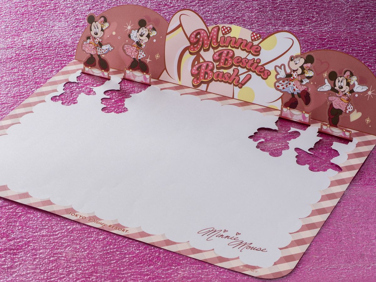 さらに!上記のレストラン2店舗では、対象メニューをご購入された方に「ミニー・ベスティーズ・バッシュ!」限定デザインのランチョンマットのプレゼントも。ステージ上で楽しく踊るミニーマウスをイメージしたランチョンマットを使って対象メニューと一緒に写真を撮ってみて。