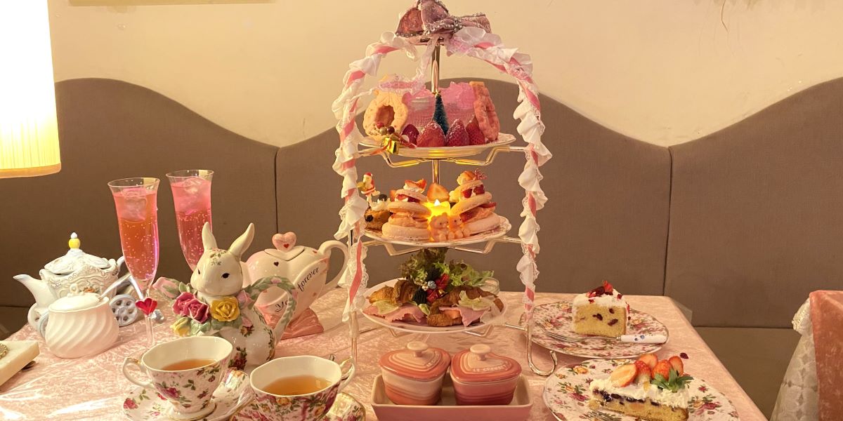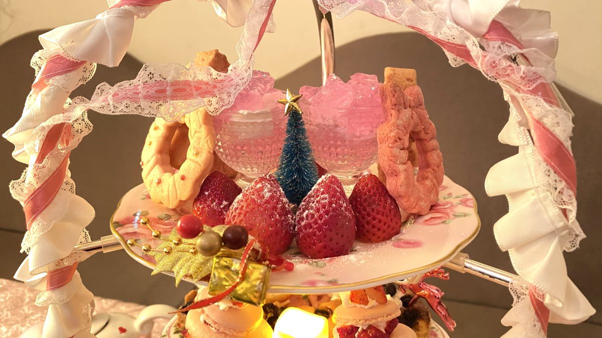 目白駅からすぐのところにある、「カフェ シャンソニエ アコリット」。その人気の秘密はメルヘン感あふれるアフタヌーンティーを提供していること。季節を問わず人気がありますが、そのなかでも特に注目が集まるのはクリスマスのアフタヌーンティー。2022年はアコリット史上最高のかわいさと話題の、ピンクをテーマにしたアフタヌーンティーが用意されています。さらにかわいいティーポットやお皿も自分好みのものをチョイスできるうれしいサービスも!