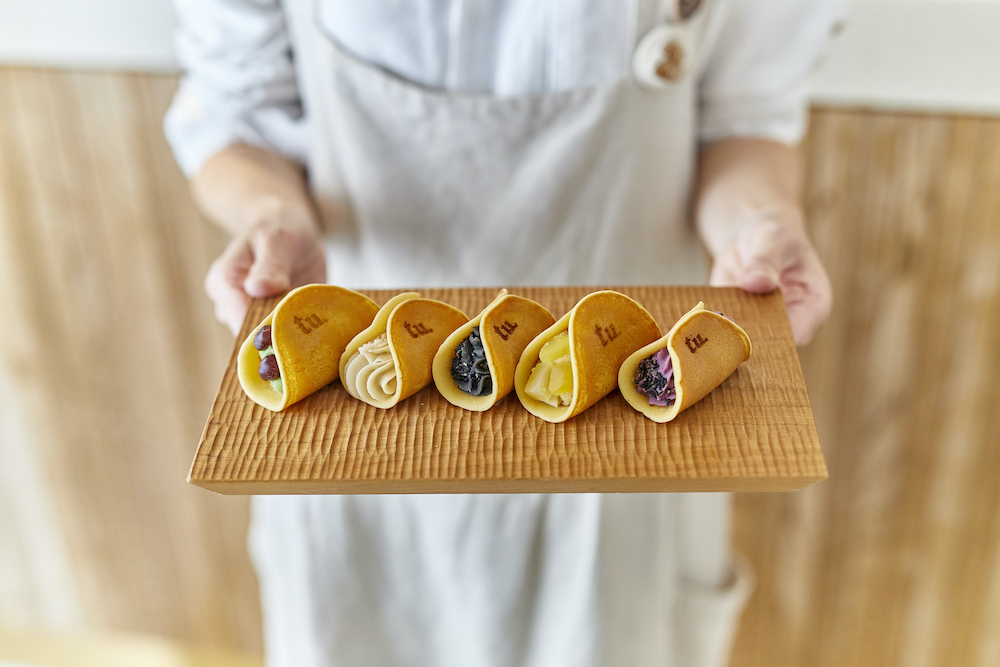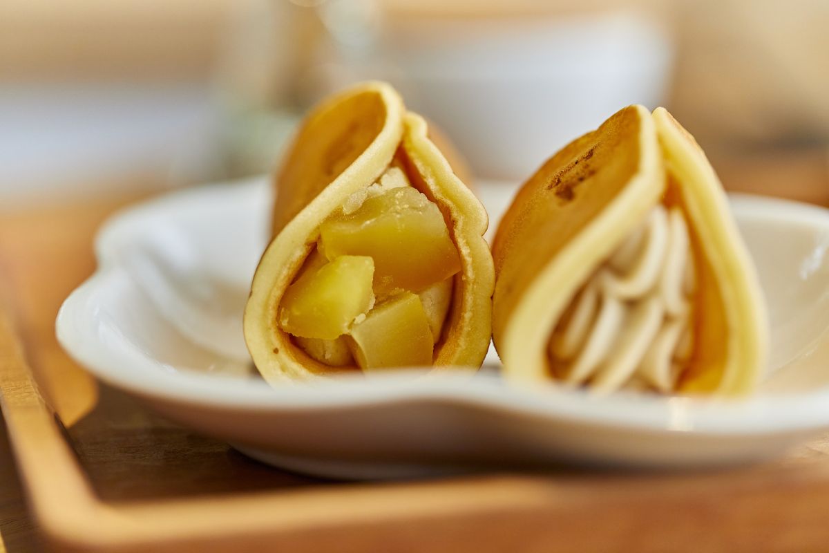 そして、tubara cafeの名物は“生つばら”。つばらつばらをモチーフに、ふわもちの皮はそのまま、洋菓子仕立ての特製マスカルポーネあんを包んだ生菓子です。日持ちは当日中ですが、お持ち帰りもできます。おすすめは「生つばら5種食べくらべセット」1490円~。その日カフェに並ぶ全種類を味わえます。