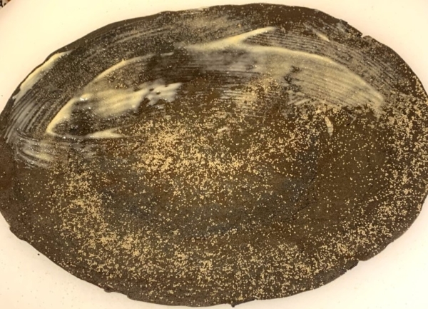 カカオ70%が練り込まれた生地に、北海道産の厳選されたバターと、サトウキビ原料のお砂糖であるカソナードをたっぷり振りかけ、最後にレモン果汁を絞ります。