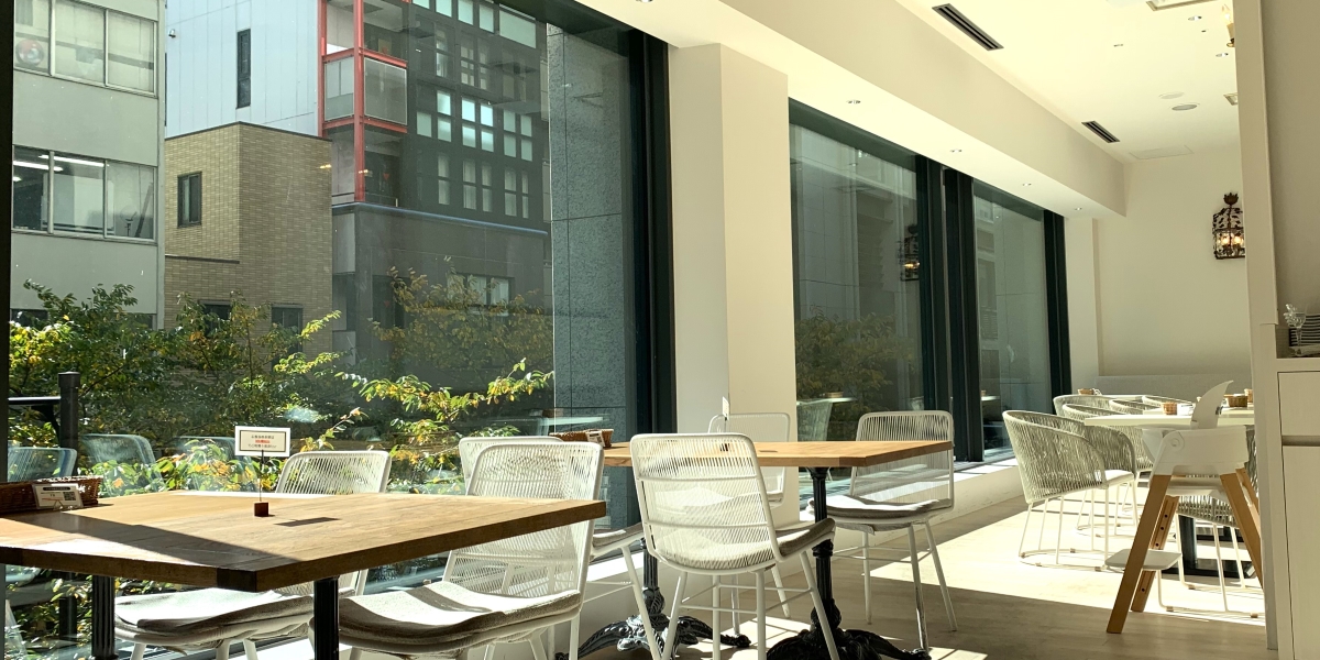 白を基調とした店内なので明るく、大きな窓があることで開放感もたっぷり!取材日は窓から紅葉を楽しむこともできました。明るい晴れた日には、気持ちのよいティータイムが過ごせそうです。