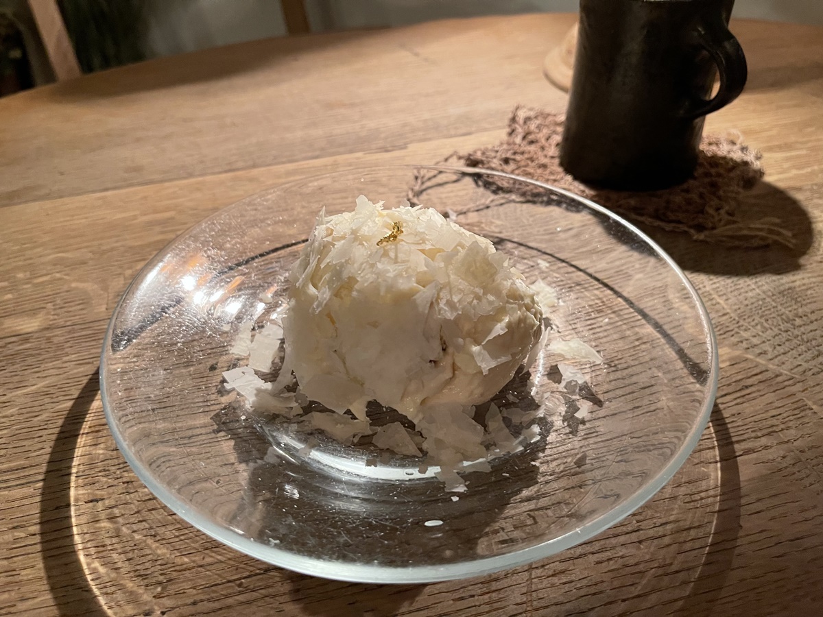 クリームチーズとカスタードクリームを合わせたなめらかなチーズクリームの上に、パルミジャーノチーズのスライスをどっさり。パルミジャーノのほのかな塩気が加わることで、甘すぎず、大人の味わいに仕上げられています。