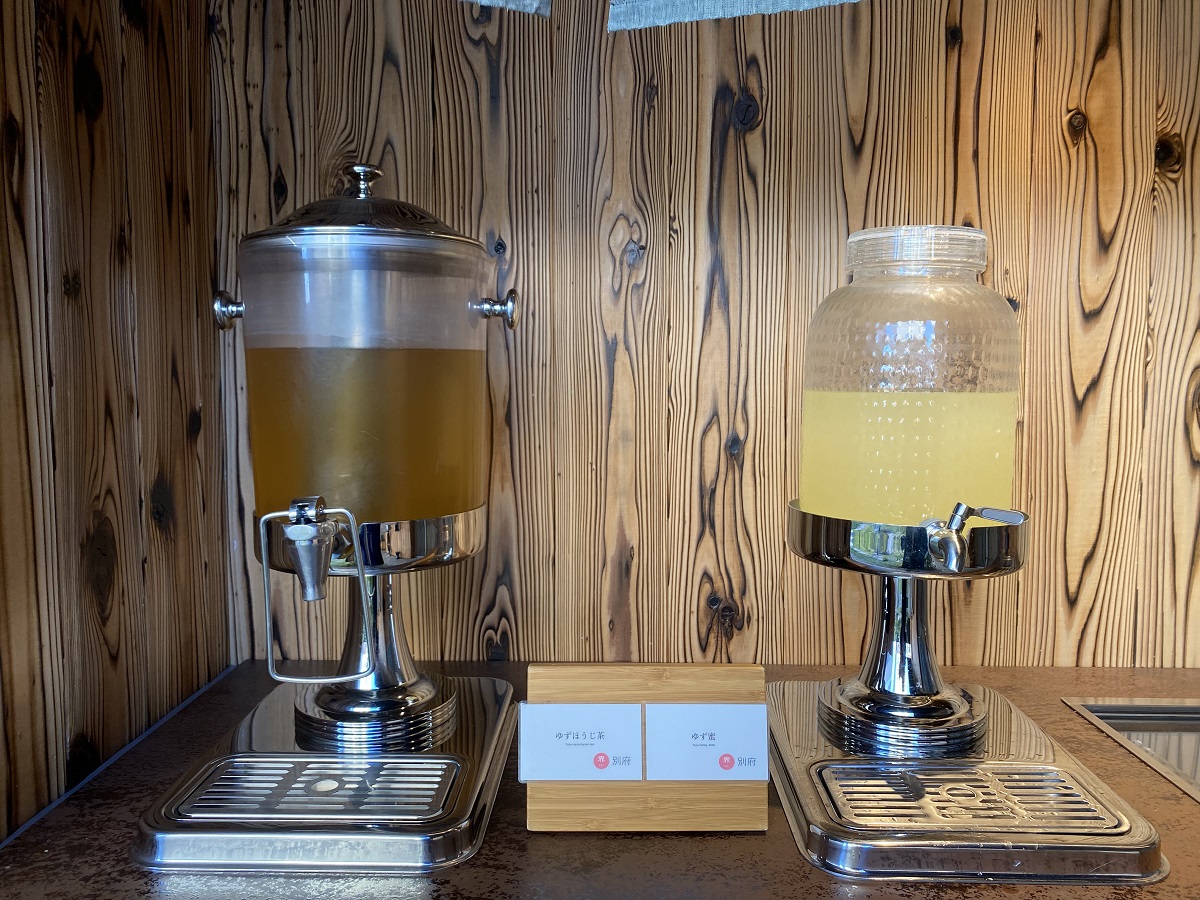 「トラベルライブラリー」では、ウェルカムドリンク(無料)が用意されています。コーヒーや紅茶、スパークリングワインに加えて、「かぼす緑茶」や「ゆず和紅茶」などの大分県らしいラインナップも。大分県に関連する図書もおいてあるので、ウェルカムドリンクを片手に、これからの旅の予定をじっくり考える、という過ごし方も素敵ですよね。
