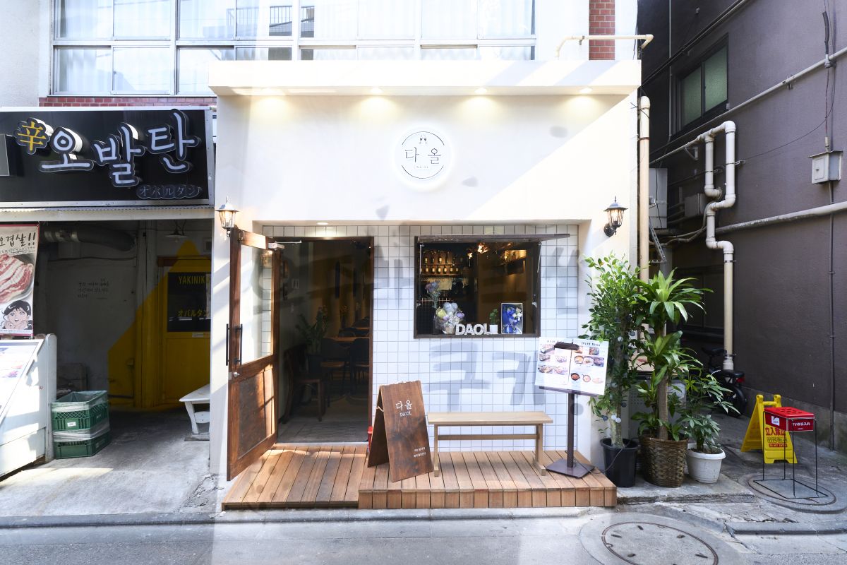 韓国料理の名店が軒を連ねる路地裏のなかでも洗練された白を基調とした外観が際立っているのが、2022年の10月にニューオープンした「DAOL」です。12月からはランチもスタートするというから、楽しみ。まるでカフェのような外観ですが、チキンをはじめとした本格韓国料理が存分に味わえますよ。