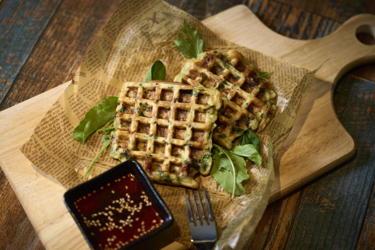 こちらは新メニューのチヂミ味のワッフル。見た目はワッフルですが、味はチヂミ。あれ?どっちだっけ?と、頭が混乱しそうな創作メニューが楽しいですね。
