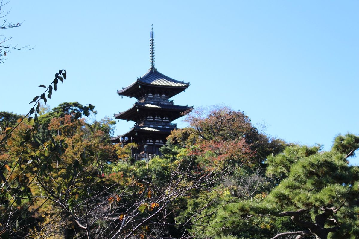 元町・中華街駅からバスで15分。国の指定名勝である日本庭園・三溪園へ!原三溪が造りあげた、5万3000坪の日本庭園です。12月上旬までの期間は、紅葉スポットである「聴秋閣」近くの遊歩道を一般開放しています。※2022年は12月11日(日)まで