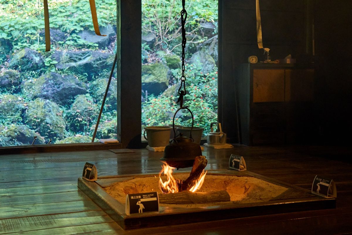 屋内には、移築の際に飛騨地方から集められた民具が展示されているほか、囲炉裏のある部屋では実際に火も焚かれています。昔の民家へ足を踏み入れたような気持ちを体感できますよ。