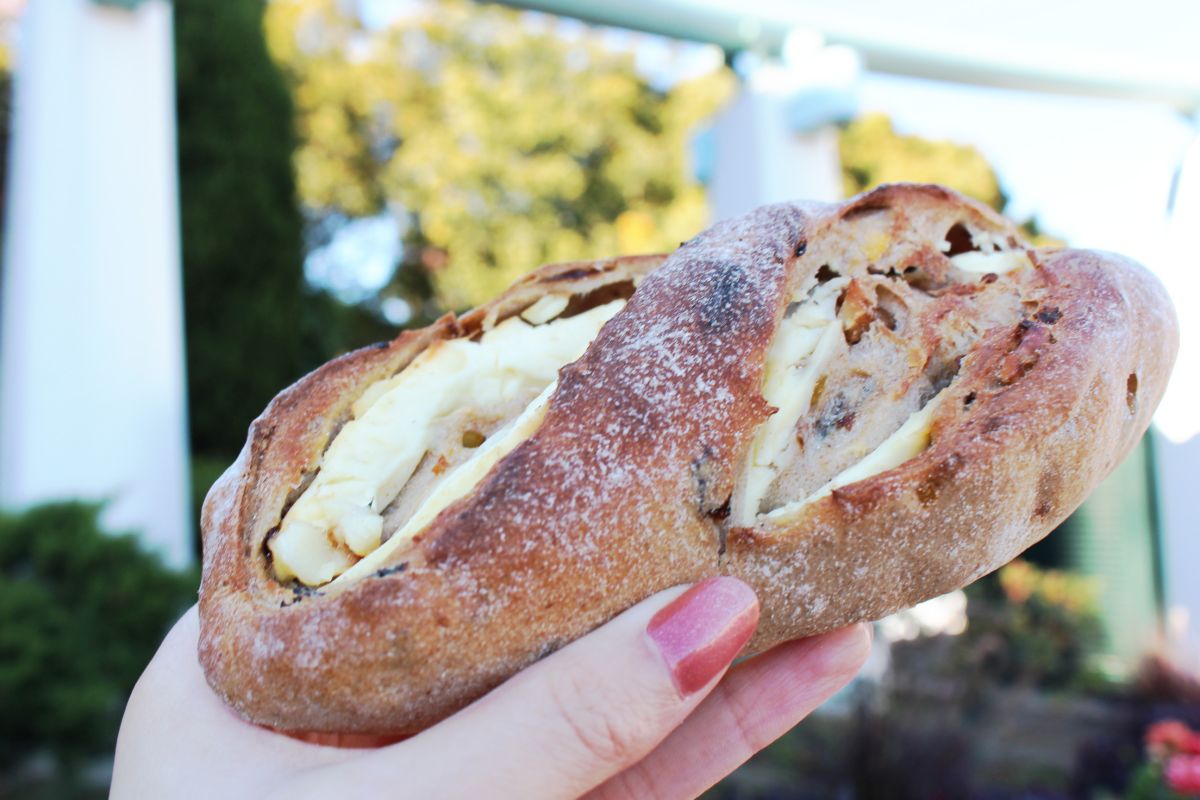 私がセレクトしたのは「ライブレッド」220円。もっちりとした生地の中にはクルミとフルーツがゴロゴロと。クリームチーズのほんのりとした塩気がライ麦生地の甘さを引き立てています。